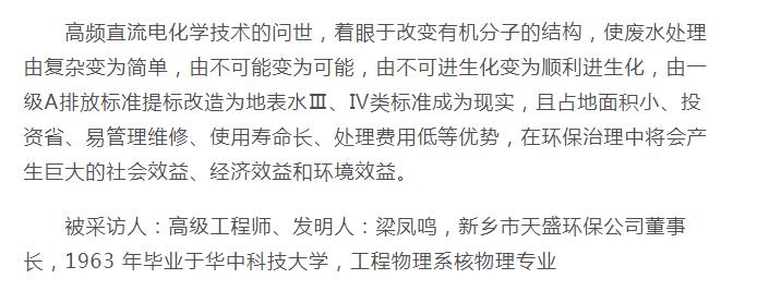 中國高新技術(shù)網(wǎng)發(fā)布:《關(guān)注:解碼科技創(chuàng)新》——新鄉(xiāng)市天盛環(huán)保“超強氧化還原廢水處理技術(shù)”