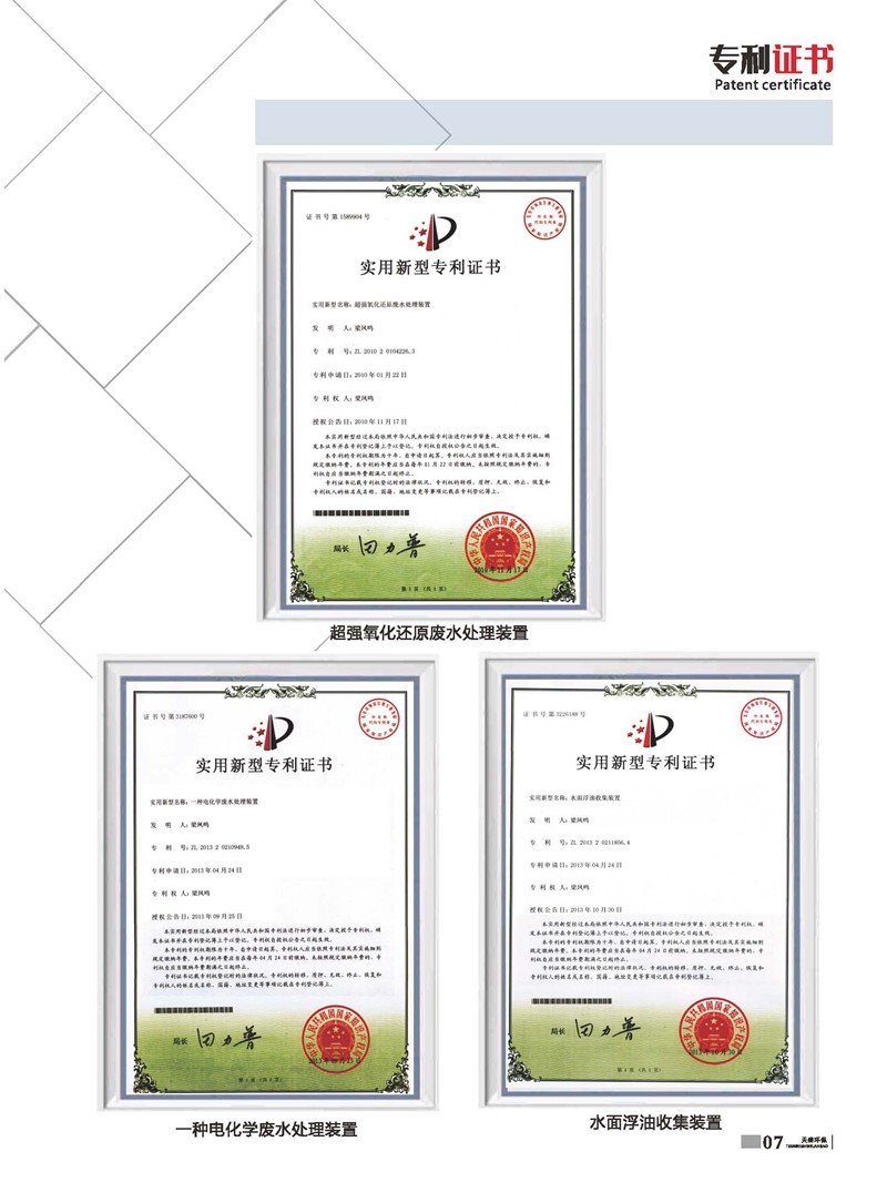 以治理廢水為主,獨(dú)立研制開發(fā)多種節(jié)能環(huán)保產(chǎn)品,已獲多項(xiàng)國家發(fā)明及新型專利水面浮油收集裝置 ZL 2013 2 0211856.4。公司堅(jiān)持“以質(zhì)量求生存、以信譽(yù)求發(fā)展、以市場為導(dǎo)向、以技術(shù)為依托”的宗旨,產(chǎn)品在國內(nèi)以“技術(shù)新、性能好、價格廉”著稱。